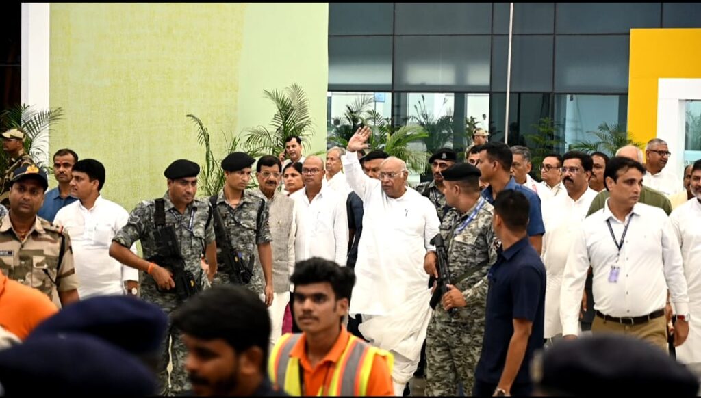 बुधवार 24 सितम्बर को पटना में होने वाली कांग्रेस कार्यकारी समिति (CWC) की ऐतिहासिक बैठक में शरीक होने के लिए राष्ट्रीय अध्यक्ष मल्लिकार्जुन खरगे मंगलवार को पटना पहुंचे। जहाँ पटना एयरपोर्ट पर कार्यकर्ताओं और समर्थकों ने उनका भव्य स्वागत किया। बताते चले किबुधवार को पटना में होने वाली कांग्रेस कार्यकारी समिति (CWC) की इस बैठक में राष्ट्रीय अध्यक्ष मल्लिकार्जुन खरगे,राहुल गांधी, सभी कांग्रेस शासित राज्यों के मुख्यमंत्री, बिहार प्रभारी कृष्णा अल्लावरू सहित देशभर से कांग्रेस पार्टी के वरिष्ठ नेतागण शिरकत करेंगे। बिहार कांग्रेस के मीडिया विभाग के चेयरमैन ,राजेश राठौड़ ने प्रेस विज्ञप्ति जारी कर कहा कि यह केवल एक बैठक नहीं, बल्कि लोकतंत्र की रक्षा और देश को नई दिशा देने का शंखनाद है!