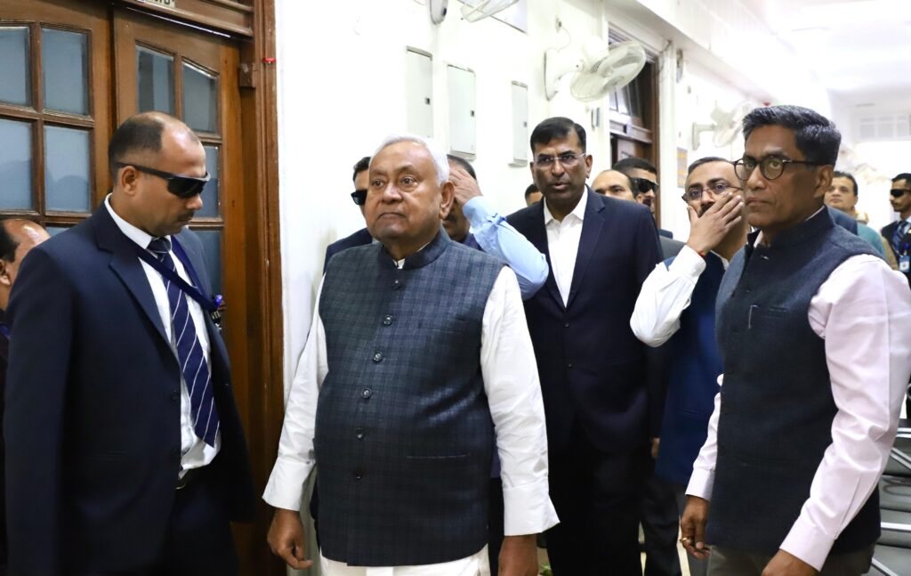 मुख्यमंत्री नीतीश कुमार आज मुख्य सचिवालय के विभिन्न विभागों का निरीक्षण किया। इस दौरान मुख्य सचिव कोषांग, मंत्रिमंडल कक्ष, वित्त मंत्री का कार्यालय, अतिथि कक्ष सहित मुख्य सचिवालय के विभिन्न विभागों की व्यवस्थाओं और कार्य पद्धति की जानकारी ली।