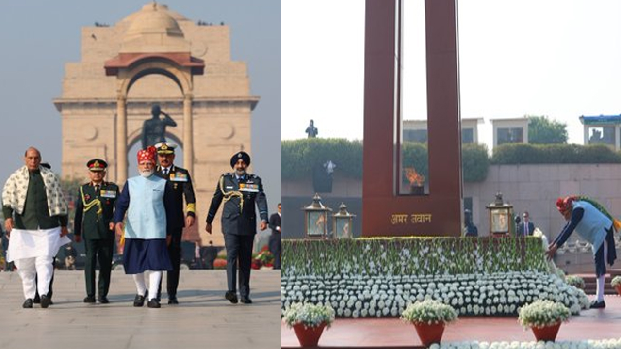 “राष्ट्रीय समर स्मारक पर, प्रधानमंत्री ने उन वीर सैनिकों को श्रद्धांजलि अर्पित की, जिन्होंने हमारे राष्ट्र के लिए अपने प्राणों की आहुति दी।”