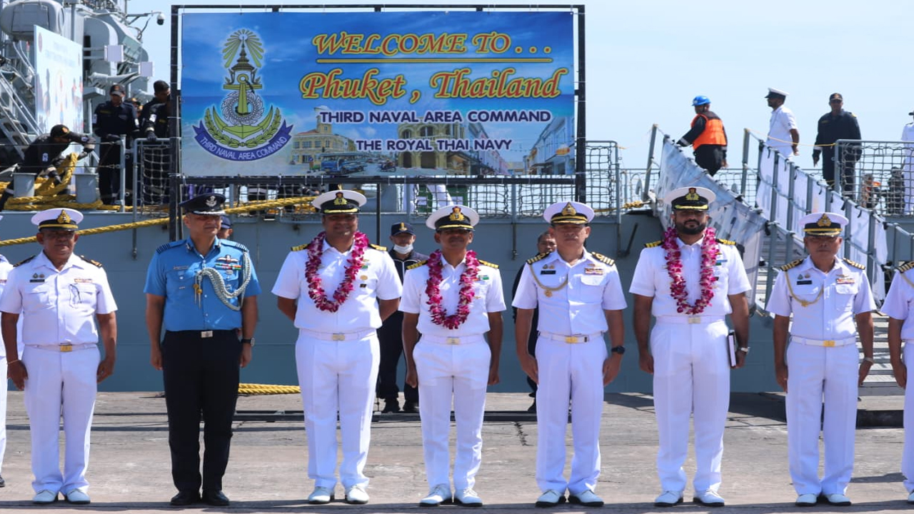 भारतीय नौसेना के प्रथम प्रशिक्षण स्क्वाड्रन (1टीएस) के जहाज आईएनएस तीर, आईएनएस शार्दुल, आईएनएस सुजाता और भारतीय तटरक्षक पोत आईसीजीएस सारथी, दक्षिण-पूर्व एशिया में जारी प्रशिक्षण अभियान के तहत 25 जनवरी, 2026 को थाईलैंड के फुकेत डीप सी पोर्ट पर पहुंचे। इन जहाजों का रॉयल थाई नौसेना (आरटीएन) द्वारा आरटीएन बैंड की औपचारिक धुनों के साथ गर्मजोशी व सम्मानपूर्वक स्वागत किया गया।