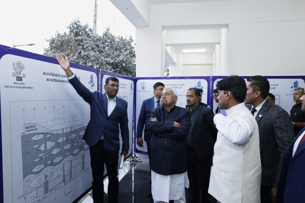 मुख्यमंत्री ने अधिकारियों को निर्देश देते हुये कहा कि यथाशीघ्र मत्स्य एवं पशुपालन विभाग को इस नवनिर्मित मत्स्य विकास भवन में स्थानांतरित करें। इस भवन के प्रत्येक तल पर सुरक्षा के लिहाज से पर्याप्त ऊँचाई की रेलिंग की व्यवस्था भी सुनिश्चित करायें। इस भवन में सभी आवश्यक सुविधाएं सुनिश्चित की जाएं ताकि मत्स्य पालकों को इसका लाभमिले और बिहार मात्स्यिकी के क्षेत्र में प्रगति करे। राज्य सरकार द्वारा कृषि, पशुपालन, मत्स्य पालन सहित विभिन्न क्षेत्रों के विकास के लिए हर जरूरी कार्य किये जा रहे हैं। कृषि रोड मैप के लागू होने से सब्जी, दूध, अंडा, मांस, फल सहित अन्य फसलों का उत्पादन बढ़ा है, जिससे किसानों को काफी लाभ मिल रहा है। बिहार को मत्स्य उत्पादन के क्षेत्र में भी अग्रणी राज्य बनाने की दिशा में हरसंभव कोशिश की जा रही है।