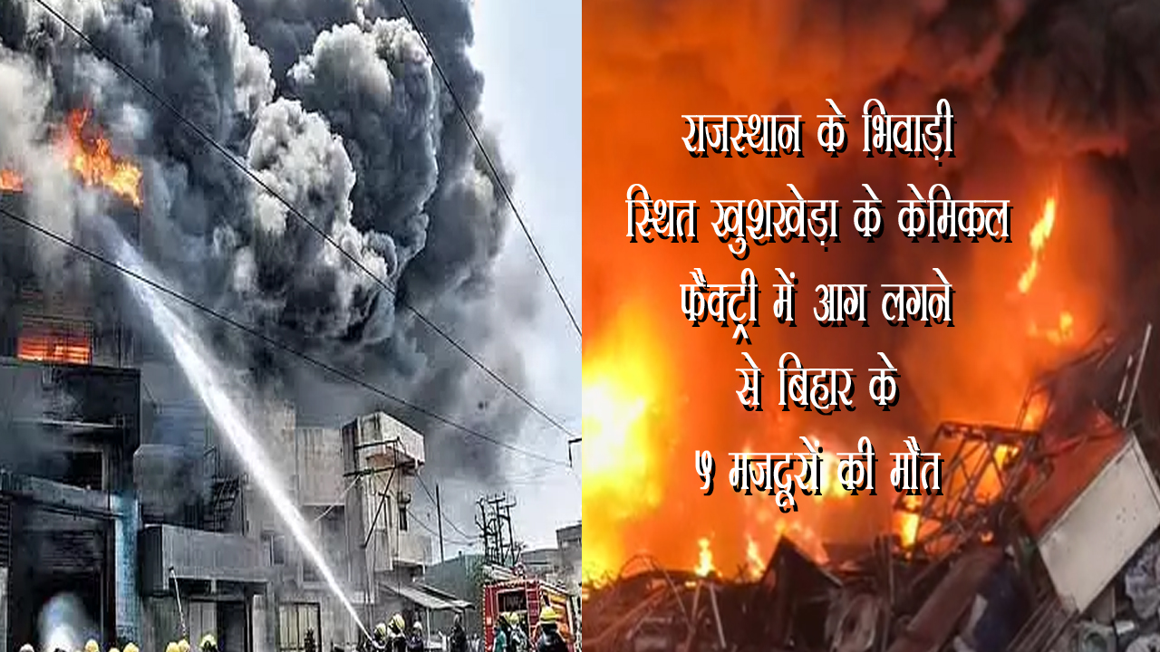 मुख्यमंत्री नीतीश कुमार ने राजस्थान के भिवाड़ी के खुशखेड़ा औद्योगिक क्षेत्र स्थित एक केमिकल फैक्ट्री में आग लगने के हादसे को अत्यंत दुखद बताया है तथा हादसे में बिहार के 5 मजदूरों की मृत्यु पर गहरी शोक संवेदना व्यक्त की है।