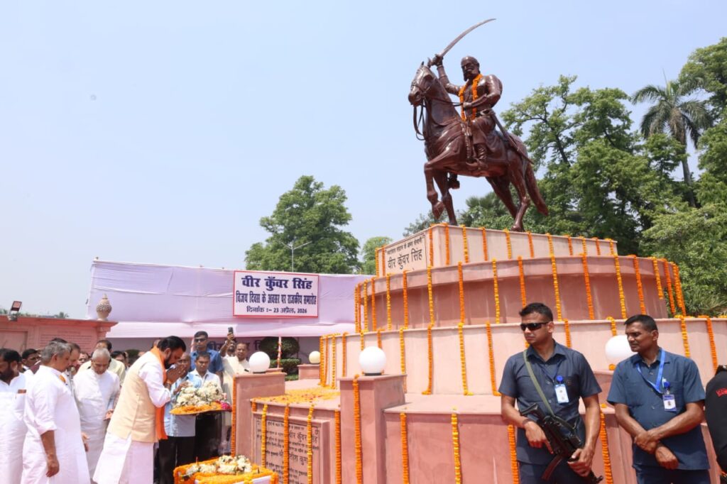 1857 के प्रथम भारतीय स्वतंत्रता संग्राम के महानायक बाबू वीर कुँवर सिंह के विजय दिवस पर वीर कुँवर सिंह आजादी पार्क में राज्यपाल लेफ्टिनेंट जनरल (रिटायर्ड) सैयद अता हसनैन एवं मुख्यमंत्री सम्राट चौधरी ने बाबू वीर कुँवर सिंह की आदमकद अश्वारोही प्रतिमा पर माल्यार्पण कर अपनी श्रद्धांजलि दी।