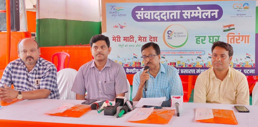सूचना एवं प्रसारण मंत्रालय, भारत सरकार के केंद्रीय संचार ब्यूरो (सीबीसी), पटना द्वारा 14 अगस्त को पूर्वाह्न 11 बजे वैशाली ज़िले के हाजीपुर स्थित ब्रह्मदेव मुनी उदासीन संस्कृत महाविद्यालय परिसर में आजादी का अमृत महोत्सव, मेरी माटी मेरा देश, हर घर तिरंगा तथा 9 साल सेवा, सुशासन और गरीब कल्याण विषय पर आयोजित पाँच दिवसीय फोटो प्रदर्शनी सह जागरूकता कार्यक्रम का शुभारंभ पशुपति कुमार पारस, केंद्रीय खाद्य प्रसंस्करण उद्योग मंत्री, भारत सरकार के कर कलमों से होगा। साथ ही मेरी माटी मेरा देश अभियान के तहत मिट्टी संकलन तथा वृक्षारोपण, हर घर तिरंगा अभियान के तहत तिरंगा यात्रा तथा केंद्र सरकार की योजनाओं के वृहत प्रचार-प्रसार हेतु जागरूकता रथ को रवाना किया जाएगा। हाजीपुर में रविवार को आयोजित संवाददाता सम्मेलन में केंद्रीय संचार ब्यूरो, पटना के उपनिदेशक सह प्रमुख संजय कुमार और कार्यक्रम प्रमुख पवन कुमार सिन्हा ने ये जानकारी दी।