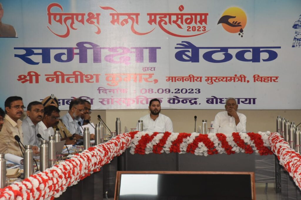 मुख्यमंत्री नीतीश कुमार ने आज बोधगया के महाबोधि सांस्कृतिक केंद्र के हॉल में पितृपक्ष मेला-2023 की तैयारियों की समीक्षा की और अधिकारियों को आवश्यक दिशा-निर्देश दिये। समीक्षा के दौरान गया के जिलाधिकारी डॉ० त्यागराजन एस०एम० ने प्रस्तुतीकरण के माध्यम से पितृपक्ष मेला-2023 की विस्तृत जानकारी दी। उन्होंने बताया कि इस वर्ष पितृपक्ष मेले का आयोजन 28 सितंबर 2023 से 14 अक्टूबर 2023 तक निर्धारित है। इस दौरान देश-विदेश से बड़ी संख्या में तीर्थयात्रियों के आने की संभावना को देखते हुए प्रशासन द्वारा पूरी तैयारी की गई है। सभी महत्वपूर्ण घाटों पर सभी प्रकार की तैयारियां की गई हैं। बेहतर व्यवस्था के संचालन के लिए कार्य समितियों का गठन कर उन्हें जिम्मेदारी दी जा रही है। जिलाधिकारी ने पितृपक्ष मेले के दौरान आवासन, साफ-सफाई, जलापूर्ति, स्वच्छता, स्वास्थ्य, विद्युत व्यवस्था, यातायात सुविधा एवं विधि-व्यवस्था आदि की तैयारियों के संबंध में जानकारी दी।