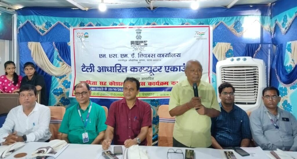 एमएसएमई विकास कार्यालय, पटना के द्वारा सोमवार को सम्राट सागर स्किल्स प्रा॰ लि॰, झाझा, जमुई स्थित सभागार में टैली आधारित कंप्यूटर अकाउंटिंग विषय पर छः साप्ताहिक उद्यमिता एवं कौशल विकास प्रशिक्षण कार्यक्रम का शुभारंभ किया गया I यह कार्यक्रम 25अक्तूबर 2023 तक आयोजित की जायेगी। यह कार्यक्रम एमएसएमई मंत्रालय, भारत सरकार के उद्यमिता सह कौशल विकास योजना के अंतर्गत, पटना कार्यालय के निदेशक महोदय प्रदीप कुमार, आई.ई.डी.एस. के नेतृत्व में आयोजित की जा रही है I