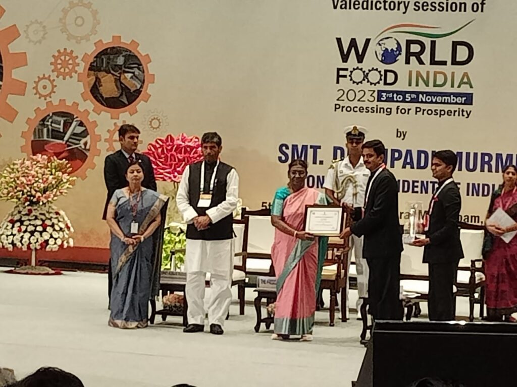 दिल्ली के प्रगति मैदान में  3 से 5 नवम्बर तक आयोजित मेगा फूड इवेंट ‘वर्ल्ड फूड इंडिया 2023’ के  समापन समारोह में राज्यों की श्रेणी में उत्कृष्ट प्रदर्शन के लिए बिहार को प्रथम पुरस्कार मिला l यह अवार्ड बिहार सरकार की ओर से  उद्योग विभाग के अपर मुख्य सचिव श्री संदीप पौण्डरीक , (भा.प्र.से.) एवं उद्योग विभाग के खाद्य प्रसंस्करण निदेशक विवेक रंजन मैत्रेय (भा.प्र.से) ने वर्ल्ड फूड इंडिया 2023 के समापन समारोह के मुख्य अतिथि महामहिम राष्ट्रपति श्रीमती द्रौपदी मुर्मू  से ग्रहण किया l इस अवसर पर भारत सरकार के केंद्रीय खाद्य प्रसंस्करण उद्योग मंत्री पशुपति कुमार पारस भी मौजूद थे l