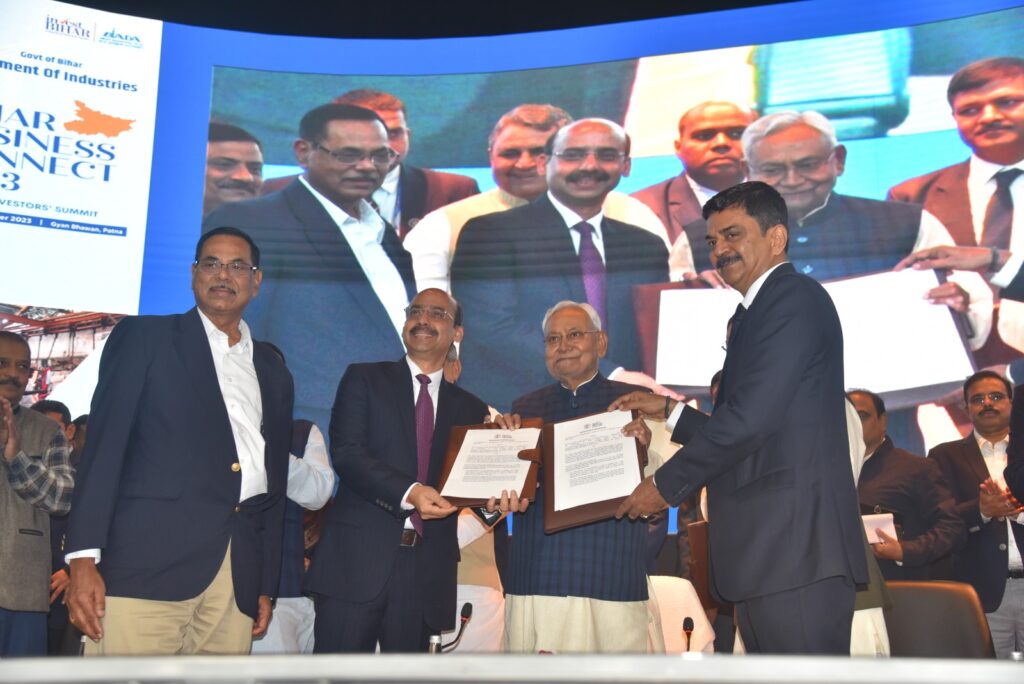कार्यक्रम के दौरान उद्योग विभाग एवं प्रमुख कंपनियों के बीच बिहार में निवेश प्रस्ताव से संबंधित एक समझौता ज्ञापन पर हस्ताक्षर हुआ और एक-दूसरे को हस्तांतरित किया गया जिसमें प्रमुख रूप से भारत पेट्रोलियम कॉरपोरेशन कंपनी, पटेल एग्री इंडस्ट्री, हॉलटेक इंटरप्राइजेज कंपनी, इंडो-यूरोपियन हर्ट हॉस्पिटल एंड रिसर्च इंस्टीट्यूशन, देव इंडिया प्रोजेक्ट शामिल है।