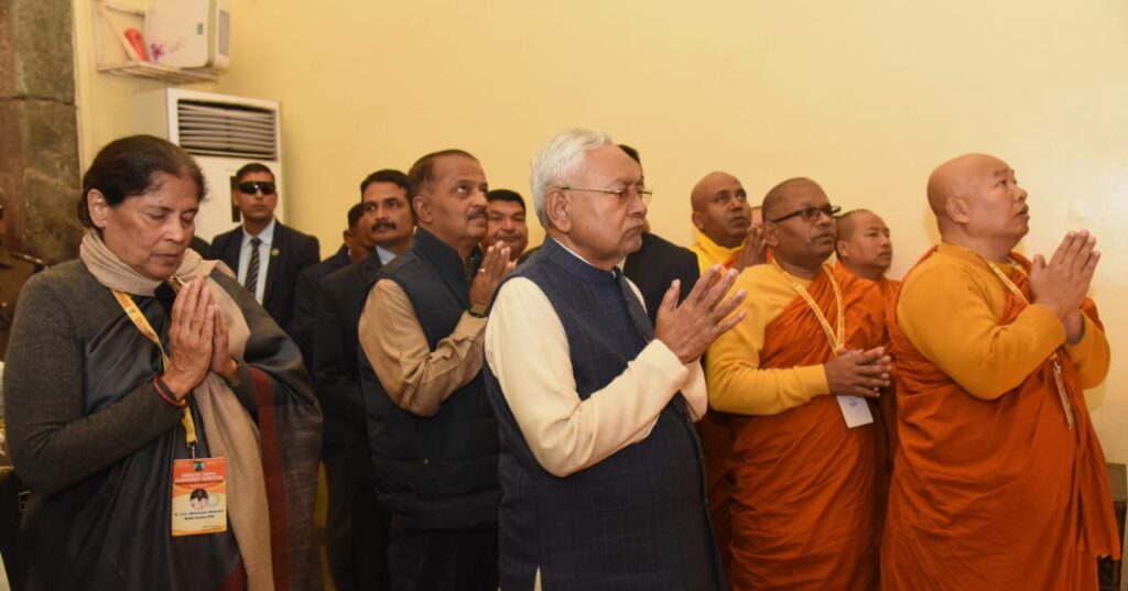 इसके पश्चात् तिब्बतियन मोनेस्ट्री में ही मुख्यमंत्री ने अंतर्राष्ट्रीय संघ मंच के प्रतिनिधियों से मुलाकात की और उनका स्वागत एवं अभिनंदन किया। इसके पश्चात् महाबोधि मंदिर परिसर में मुख्यमंत्री ने महाबोधि महाविहार एवं बोधगया टेंपल मैनेजमेंट कमिटी कार्यालय में 180 के0 डब्ल्यू०पी० सोलर पावर प्लांट का शिलापट्ट अनावरण कर शिलान्यास किया। साथ ही महाबोधि मंदिर के उत्तर दिशा में पीतल से निर्मित भव्य द्वार का उद्घाटन किया। मुख्यमंत्री ने महाबोधि मंदिर के आउटर बाउंड्री रेलिंग का भी शिलान्यास किया।