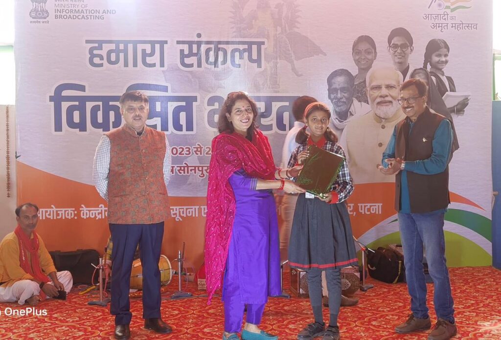 सोनपुर मेले में केंद्रीय संचार ब्यूरो, सूचना एवं प्रसारण मंत्रालय, भारत सरकार,पटना के तत्वाधान में ‘ हमारा संकल्प विकसित भारत’ अंतर्गत फोटो प्रदर्शनी सह जागरूकता कार्यक्रम का समापन सोमवार (25 दिसंबर2023) को संपन्न हुआ।एनसीसी बिहार-झारखंड के प्रभारी अपरमहानिदेशक बिग्रेडियर आशुतोष कुमार सिंह मुख्य अतिथि थे जबकि सीबीसी-पीआईबी पटना के उपनिदेशक संजय कुमार मौजूद रहे। समापन कार्यक्रम के दौरान विभिन्न प्रतियोगिताओं के केंद्रीय विद्यालय सोनपुर के विजेता छात्र-छात्राओं को मुख्य अतिथि ने पुरस्कृत किया।