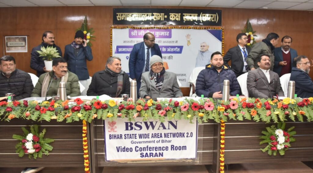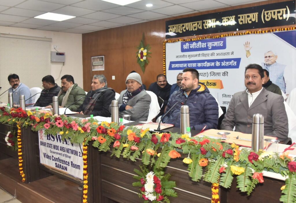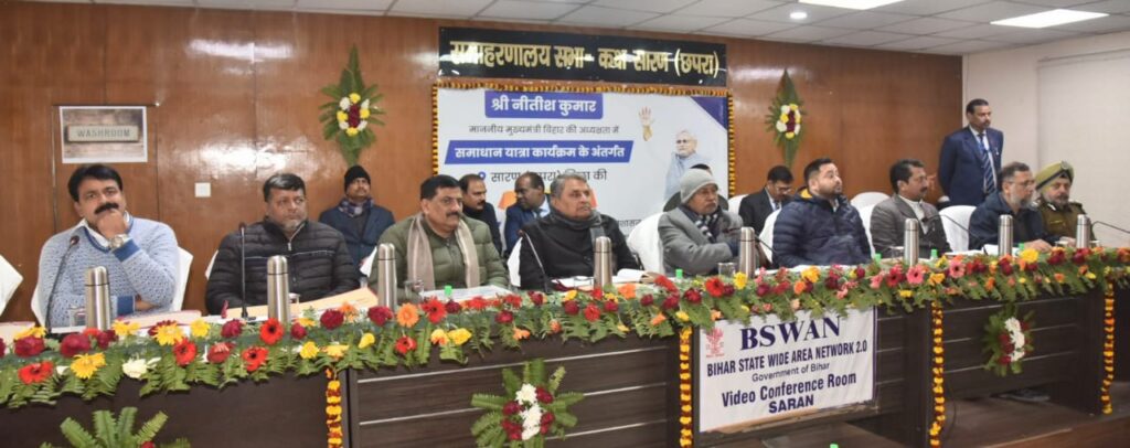 मुख्यमंत्री नीतीश कुमार ने समाधान यात्रा के क्रम में सारण जिले में विभिन्न विभागों द्वारा चलाए जा रहे विकास कार्यों की प्रगति के संबंध में छपरा के समाहरणालय सभाकक्ष में समीक्षात्मक बैठक की। बैठक में सारण जिले के विधायकगण / विधान पार्षदगण तथा विभिन्न विभागों के अपर मुख्य सचिव / प्रधान सचिव / सचिव शामिल हुए।